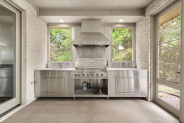 - Barbecue, Built-In Barbecue, Covered Patio/Porch, Lighting, Outdoor Grill, Outdoor Living Center, Private Yard, RV/Boat Parking, Rain Gutters