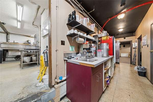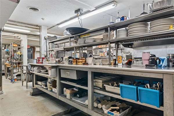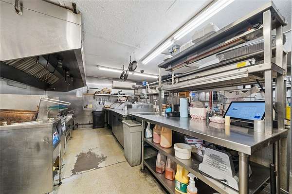 Commercial kitchen area approximately 23 x 20 designed to support full restaurant service.