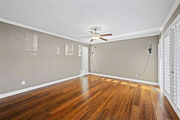 - Bar, Bathroom Mirror(s), Built-In Features, Ceiling Fan(s), Crown Molding, Double Vanity, Granite Counters, Open Floorplan, Pantry, Primary Downstairs, Split Bedrooms, Walk-In Closet(s), Walk-In Shower