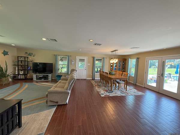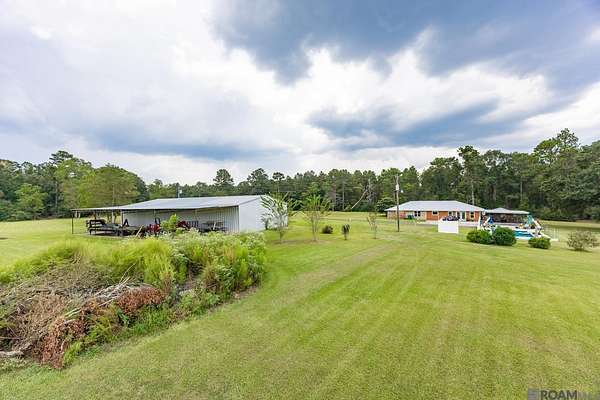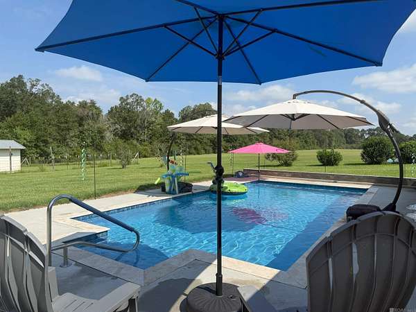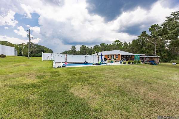 PRICE REDUCED! HIGHLY MOTIVATED SELLER! 3 bed/3.5 bath home with over 2,600 square feet on just under 20 cleared acres of peace, quiet, and privacy. The gunite chlorine pool, huge covered patio and sun deck provide plenty of opportunities for relaxing or entertaining. Home includes a tankless hot water heater, large open floor plan and no carpet. Each oversized bedroom has its own en suite bathroom. Two bonus areas for office space. The kitchen has quartz countertops, room for four at the bar, custom-built cabinets, and is fully equipped with stainless steel appliances. Washer and dryer are also included. Outside there are multiple storage units, all with electricity including: a 40'x80' shop with a 20'x80' overhang in the back, a 14'x24' air-conditioned building suitable for animals with a 78'x80' fenced area surrounding it, and a 14'x18' storage building out the back door of the house. Also on the property and included in the sale is a 16'x60' 2 bed/2 bath mobile home with its own storage building and small fenced yard, perfect for in-laws or rent it out for extra income. Several pieces of equipment are included in the sale of this magnificent property, including two tractors, two utility trailers, a side-by-side, and a 24' gooseneck trailer. The sale of this home will include over $100,000 of extras to help with the cost of furnishing and maintaining the property.