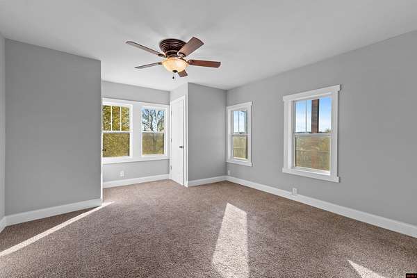 - Carpet, Ceiling Fan(s), Laminate Floor, Split Bedroom Plan, Tile Floors