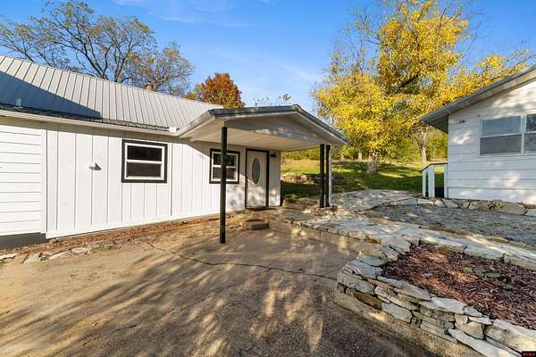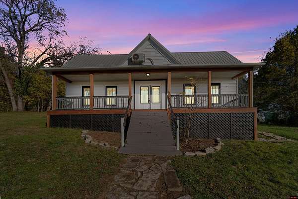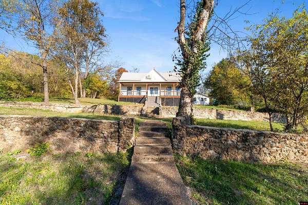 Perched on a hill in the heart of Yellville, this beautifully restored 5 Bedroom/1.5 Bath farmhouse blends historic charm with modern comfort and style. Conveniently located yet tucked away, this home offers a peaceful private oasis with sweeping views. Inside, vaulted ceilings, open-concept living, and original stonework meet new flooring, appliances, cabinetry, and a ductless mini-split HVAC system. Two bedrooms are on the main level, with three (including one that could be a spacious bonus room) upstairs. Enjoy evenings on the covered porch or entertain on the back patio. The 1.9-acre m/l yard offers plenty of space to garden and entertain, plus an oversized 2-car garage/workshop. Just minutes from Crooked Creek, Bull Shoals Lake, and the White River, this home is an Ozark's gem!