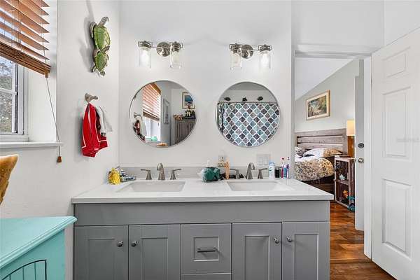 At the heart of the home, the kitchen has been fully updated with stainless steel appliances, granite countertops, and soft-closing cabinets, making it as practical as it is elegant. Each bathroom has also been beautifully renovated with granite counters, upgraded finishes, and a fresh, modern look, providing a true move-in-ready experience.