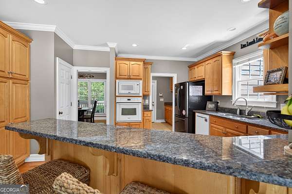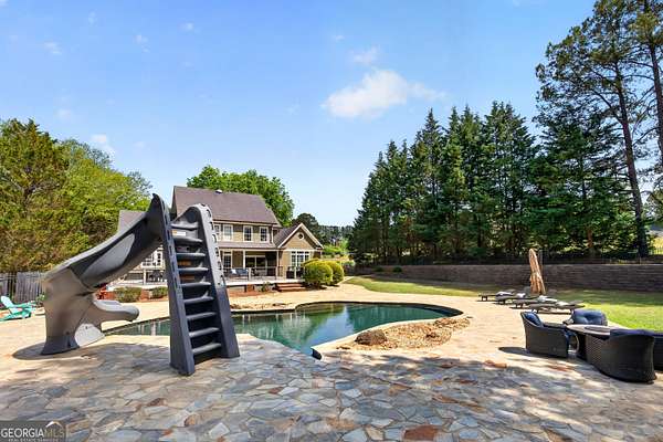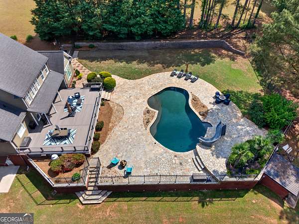 Don't miss this opportunity to own this Fantastic Home Located in N. Pike County!! This 5 Bedroom, 3.5 Bath home located in a highly sought after Pike County/Griffin neighborhood has an incredible outdoor living space. Huge Trex Back Deck overlooking a beautiful In-Ground Salt Water Pebble Tec Pool with a Triple Water Fall Feature, a Slide w/ Custom Stack Stone Work & Stone Pool Surround. Fantastic setting on Gorgeous Wooded Lot with a Wrought Iron Fenced Yard. Detached 3-Car Garage/Workshop w/ Separate Entrance. Separate Pool Pump House. Architectural Shingle Roof. On the Main Level you will find Hardwood Floors throughout Common Areas, Gorgeous Crown Molding, 2" Wooden Blinds & Plantation Shutters. Large Living Room with a wall of windows. Office/Den with Custom Cabinetry & Desk Built-ins. Open Kitchen with beautiful cabinets and granite countertops. Primary Bedroom on the main with two Large Walk In Closets and Spacious Bathroom. Three Bedrooms upstairs with great closets. Full Finished Basement with Additional Family Room (currently set up as a Theatre Room), Bedroom, Full Bath & Large Laundry Rm, as well as room perfect for an Exercise Room or Great storage! Perfectly located for easy access to 19/41. Amazing house! Great schools! Come see the Home of your Dreams!