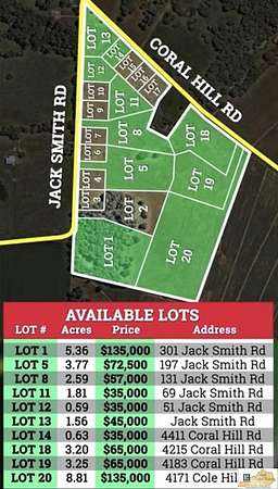 Est $991/moLot 1-5.36 Acres Jack Smith Rd Serene countryside views, with plenty of space for your family to grow and thrive. Our latest building lotoffers the ideal setting to create the home you've always envisioned. ????Ready to start your next big adventure? Contact us today tolearn more about this unique opportunity!