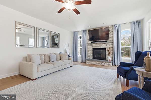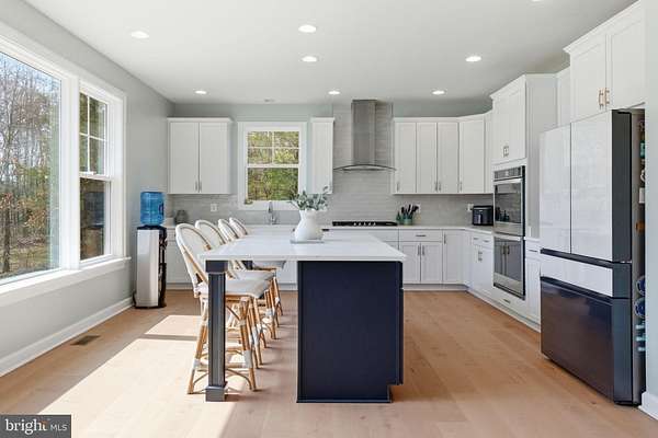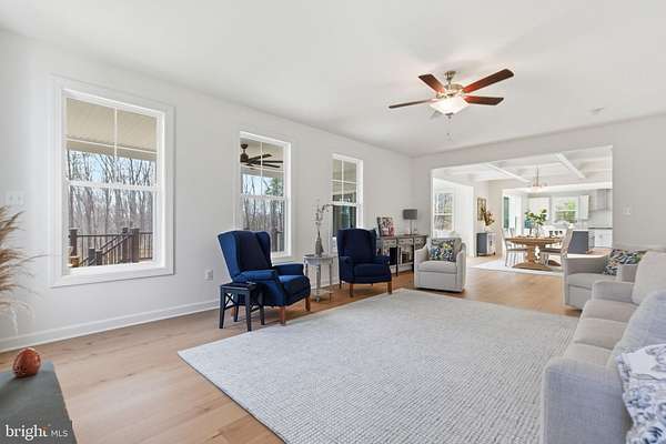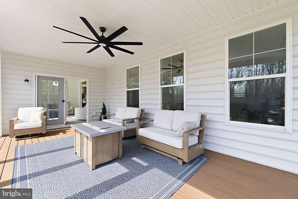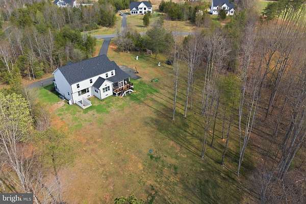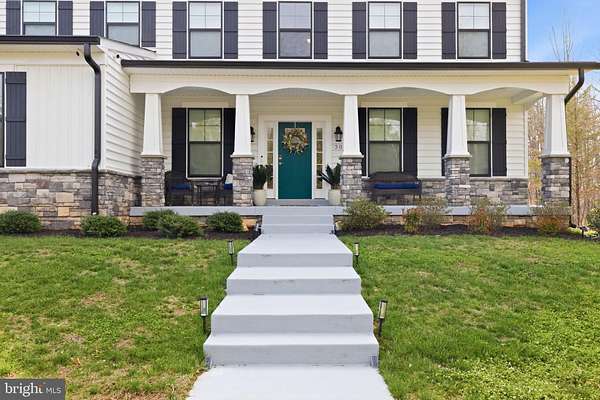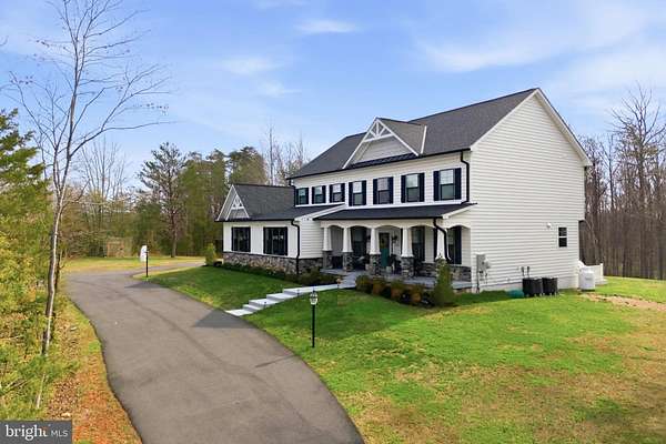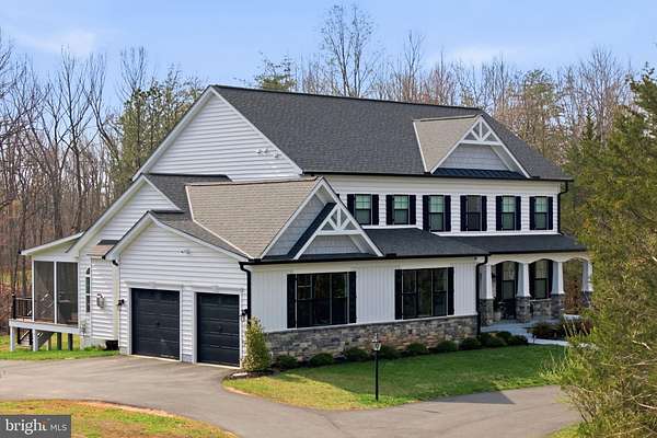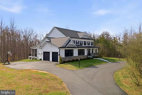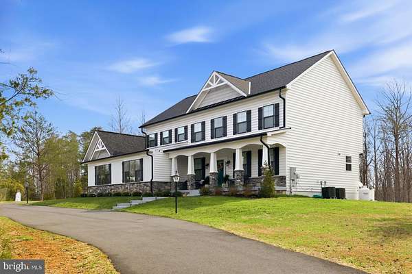 Built in 2023 and presenting like new, this stunning Sullivan Reserve home offers over 4,600 square feet of thoughtfully designed living space on a private 3.55-acre corner lot with a 300-foot circular driveway and classic lamp post. Featuring 5 legal bedrooms and 3.5 baths, the home includes 3,218 square feet above grade plus a 1,394 square foot finished basement, along with an oversized 4-car tandem garage with epoxy flooring. Inside, all three levels boast 9-foot ceilings and engineered hardwood flooring throughout, creating a seamless and elevated feel. The main living area is anchored by a beautifully upgraded kitchen with an oversized picture window, quartz surfaces, wine bar, and coffee bar nook, complemented by custom staircase railings and modern lighting fixtures throughout. The primary suite offers a true retreat with vaulted ceilings and a spa-inspired bathroom featuring a steam shower with massage functions and body sprays. Outdoor living is exceptional with a fully covered, all-seasons enclosed space featuring barn-style sliding screened doors, an extended deck, and a cascading staircase leading to the expansive, pool-capable yard. Additional features include black exterior windows and gutters along the front elevation, a whole-home water softener treatment system, and well and septic. Ideally located in a private and peaceful setting with convenient access to I-95, Quantico, and shopping, and zoned for top-rated Stafford County schools including Margaret Brent Elementary, Rodney Thompson Middle, and Mountain View High School.