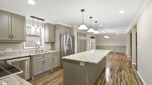 Discover the perfect blend of peaceful seclusion and convenient access at 301 Little Valley Drive. Nestled on 3.49 wooded acres just 20 minutes from vibrant downtown Greenville, this updated home offers room to breathe, entertain, and create. With approximately 3,500 square feet of thoughtfully designed living space, the home is ideal for hosting and everyday comfort. The expansive kitchen anchors the main level, while the spacious owner's suite, oversized bedrooms, and generous closets provide functionality and style throughout. At the heart of the property is a massive, fully powered workshop - a dream for hobbyists, car enthusiasts, or anyone needing serious workspace. Complete with tall ceilings, a vehicle lift, and ample storage, it's ready to handle everything from personal projects to small business needs. Adding even more versatility, a detached mother-in-law suite offers privacy and flexibility - perfect for hosting guests, creating a separate hangout space, or generating passive income. Tucked well back from the road and surrounded by mature trees, the home provides a serene backdrop for outdoor living. Whether you envision quiet mornings on the porch, room to roam, or space for gardens, trails, or future ideas, this property delivers.