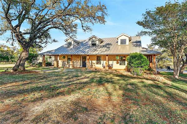 Set on 2.3 fully fenced and gated acres in the highly sought-after Medlin Creek neighborhood off Fitzhugh Rd, this remodeled Hill Country property offers space, privacy, and a lifestyle close to wineries, breweries, and near one of the Hill Country's favorite towns, Dripping Springs. The 3,500 sq ft home features 3 bedrooms, 2.5 bathrooms, and a large converted garage that functions as an expansive bonus or flex space with endless potential for a large primary suite, guest quarters, or additional bedrooms. The main level includes the primary suite, while two additional bedrooms are located upstairs. Remodeled in 2021, the home exudes rustic charm with thoughtful updates like beamed ceilings and a german schmear fireplace. Interior highlights include wood floors in the main area, shiplap walls, wainscoting in the dining area, and updated lighting fixtures. The kitchen and primary shower have been updated, offering a beautiful, functional layout while maintaining character. Outdoor living is a standout feature with a large covered back patio, pool and spa, fire pit, outdoor kitchen, a wet weather creek at the back of the lot, and views of oak groves throughout the property. The wraparound front porch, complete with a swing and space for rocking chairs, creates a welcoming place to enjoy the Hill Country setting. The property backs to a larger ranchette, enhancing the sense of privacy and country living while still only minutes from downtown Dripping Springs. Additional features include a well and 40,000 gallon rainwater collection system, a storage shed, playscape, and a chicken coop. This is a rare opportunity for acreage living in a prime Dripping Springs location with flexibility, charm, and room to make it your own. Call today!