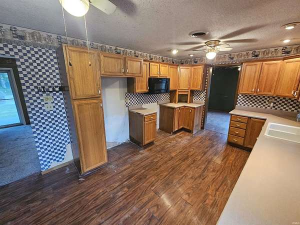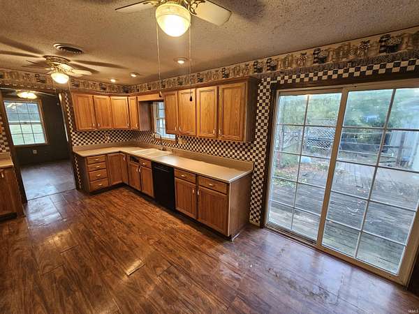 You won't find anything else on the market like this! This is a 3 bedroom, 1.5 bathroom home tucked away in the corner of Oaktown! This home has 2 living areas, an eat in kitchen, a freestanding fireplace, and a 2 car attached garage. The home has a fish pond area and expansive back deck, but both may need some work and creativity to make it your own oasis. The property has a 36x40 pole barn with 2 sliding doors that would make a perfect workshop or storage area and it sits on just shy of 2 acres of ground! This is a bank owned property, so it is to be sold AS IS and would not qualify for any government loans in its current condition, but is priced way under fair market value to reflect the condition!