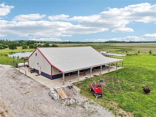 Nestled in the serene countryside of Kingsville, Missouri, 301 NW 1601st Rd offers a tranquil retreat on 40 acres of picturesque land. This energy-efficient barndominium boasts 2872 sq ft of living space, featuring 4 bedrooms and 3 full bathrooms, including a spacious primary suite on the main level. The kitchen is open concept with the living and dining area offering spacious and ample room. Step outside to enjoy the amazing view that provides excellent opportunities for nature enthusiasts. With a metal roof and slab foundation, this home combines durability with low maintenance. Located just 20 minutes from Lee's Summit, it offers the perfect balance of rural living with city conveniences. Easy access to Warrensburg and Whiteman Air Force Base. Three stocked ponds. Fenced for livestock/horses. 2 Horse shelters and two automatic freeze proof waterers that do not require electricity. 13 acres of Alfalfa provides additional revenue. Multiple building sites should additional home sites be needed. No HOA restrictions allow for personal customization, making it an ideal choice for those seeking a peaceful, country lifestyle.