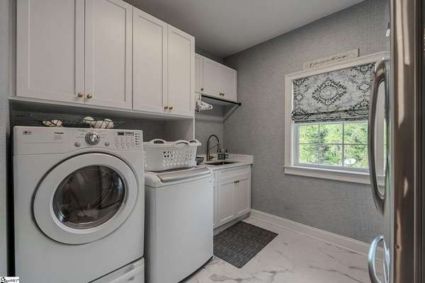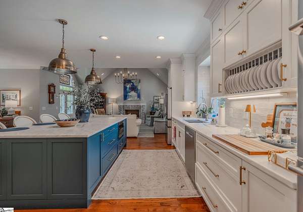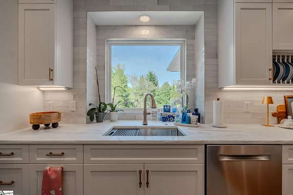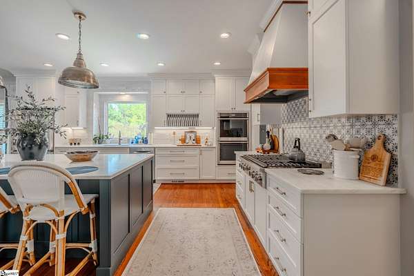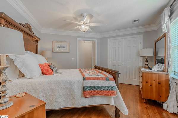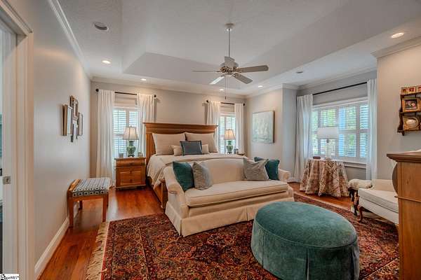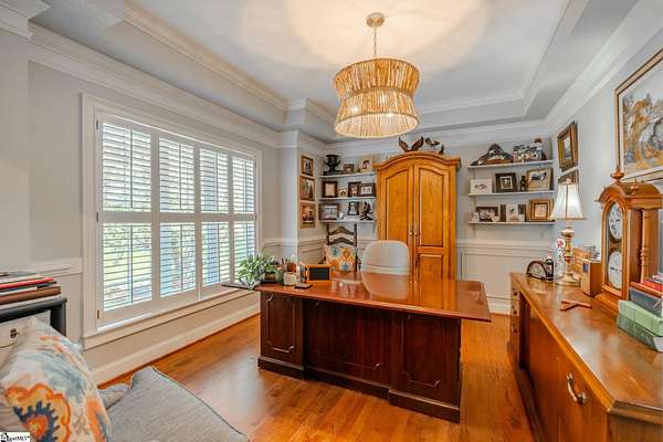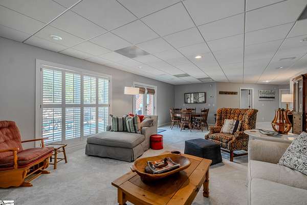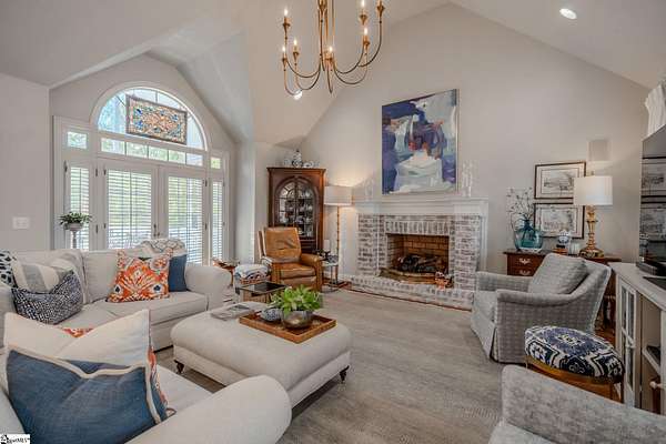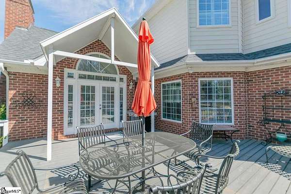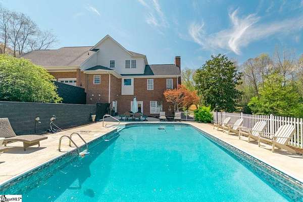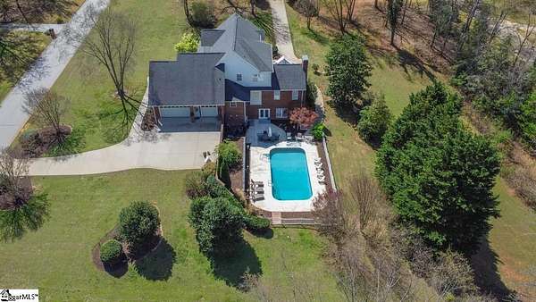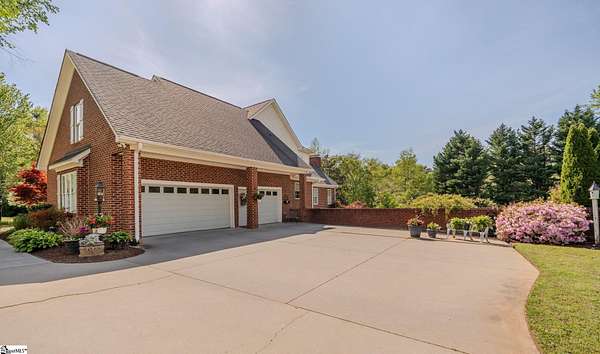 Located in the Woodlands of Taylors, SC, 301 Rivercrest Dr. offers a beautifully maintained brick home on 2 private acres just 20 minutes to Greenville, SC, Greer, SC, and Travelers Rest, SC. Features include a 2-story foyer, private study, loft sitting area, and expansive main-level owner’s suite. The open floor plan showcases a cathedral-ceiling great room with fireplace, flowing into a custom kitchen with marble countertops, upgraded stainless appliances, and breakfast area. Enjoy outdoor living on the deck with covered grilling space overlooking a lush setting and in-ground pool. Five total bedrooms plus a finished walkout basement with full secondary living space, kitchenette, separate entrance, driveway, garage, laundry, and private patio—ideal for multi-generational living or guests. 4-car garage capacity (3-car main + 1-car lower), large laundry/utility room, and exceptional storage throughout. Located in a friendly, walkable community with convenient access to shopping, dining, schools, and recreation.