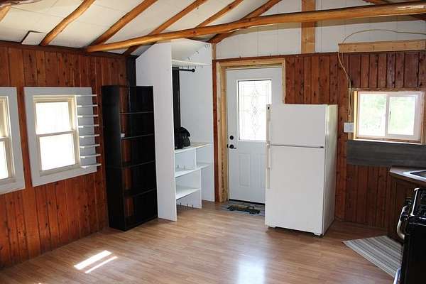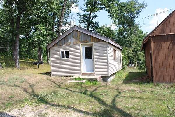 Est $481/moRustic 1 bedroom cottage with a 24x32 pole barn with a loft. This cottage is on a corner lot and within 500 feet of state land. This cottage was recently lived in as a year around home. The bathroom and electrical (100 amp breaker box) were recently updated, vinyl siding and metal roofs are newer as well along with windows and flooring the cottage also has washer & dryer hook-ups. Pole barn has a huge loft for extra storage.