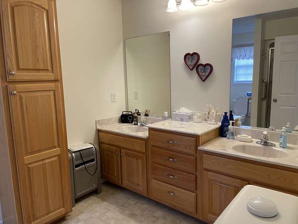 The master suite includes a large closet and double‑sink vanity.
