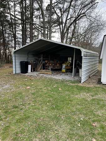 Additional features include a paved driveway, storage building, and detached carport.