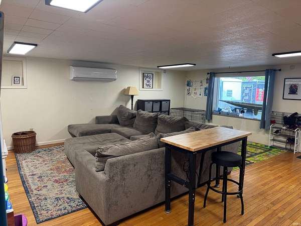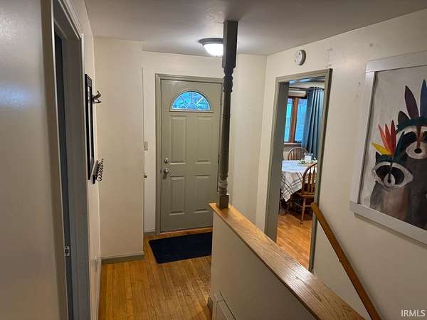 Located at 301 South Elm in the sought-after town of Hagerstown, this hillside home offers a rare 1.84-acre in-town lot. Because the home sits on a hill, the upper level serves as the main entrance from the driveway, providing elevated views over the spacious backyard. The main level features an open living room and kitchen, three bedrooms (one currently used as a home office), and a full bathroom with jacuzzi tub and shower. Sliding glass doors from the office lead to an upper patio deck overlooking the property. The fully finished lower level expands the living space with a primary bedroom suite featuring a full bath and large closets, an additional living room area, a laundry room with kitchenette, and a third bathroom with an attached storage closet. Two walkout doors provide convenient access to the back patio and wrap-around driveway, and large windows bring natural light while overlooking the backyard. Heating is provided by a fuel oil boiler with radiant heat, while cooling includes central air on the upper level and two mini-split systems on the lower level for individual temperature control. Additional features include an attached two-car garage with built-in shelving and an additional 1.5-car lower garage. The property also includes a renovated clubhouse with concrete floor, LED lighting, outlets, and insulation, a zip line, chicken coop, and lawn mower shed with additional storage. Backing up to a nature preserve and creek with no rear neighbors, this property offers space, privacy, and flexibility rarely found within town limits.