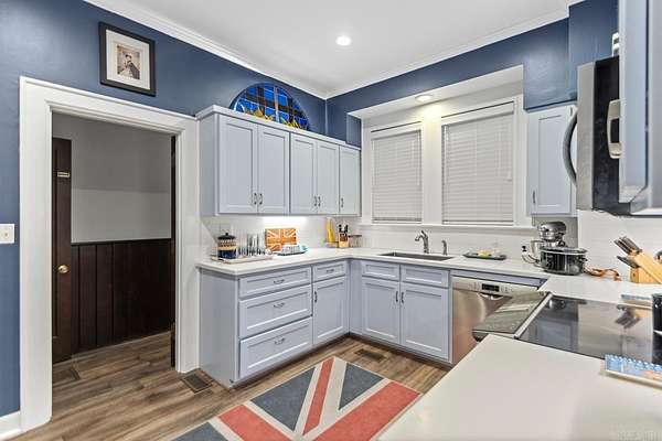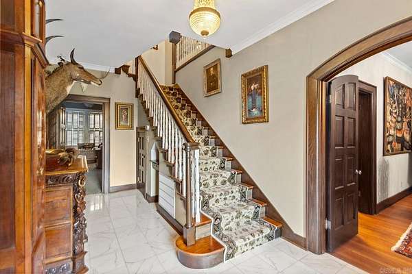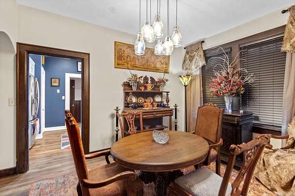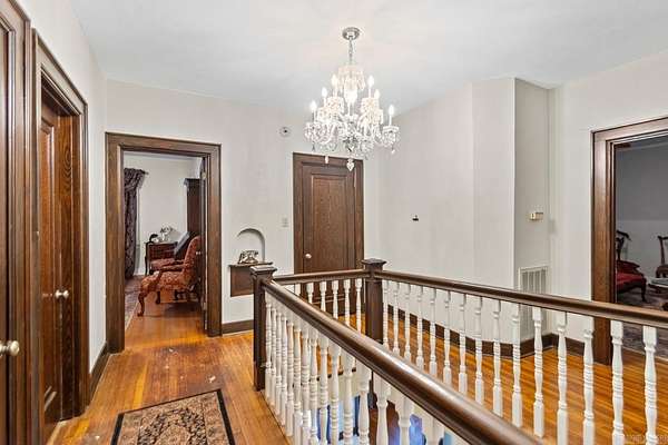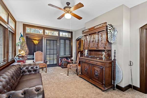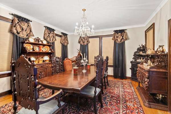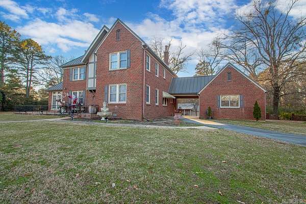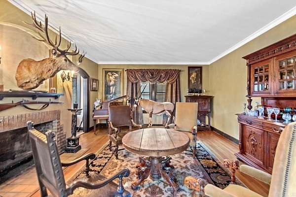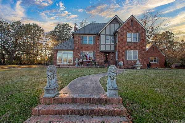 Exquisite two-story Tudor home with a rare blend of timeless charm and updated conveniences. Featuring 3 bedrooms, 3 baths, formal dining and spacious living room, a cozy den, and 2 offices/ sunroom. This historic home has Anderson windows, an updated kitchen, gas fireplace & original hardwood floors that exude warmth and character. The high ceilings and intricate trim details further enhance the old-world charm of this remarkable property.. It also includes a 2 car garage, basement, and separate mother-in-law quarters/guest house, all set on 6 acres. This property has endless possibilities! This is your opportunity to own a piece of history, complemented by elegant architectural details and the serenity of expansive acreage. The guest house is 780 sq ft 1 bedroom 1 bath. New metal standing seam roof 2019
