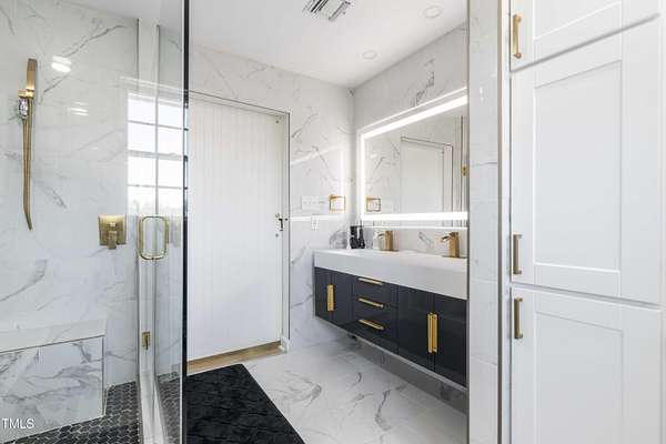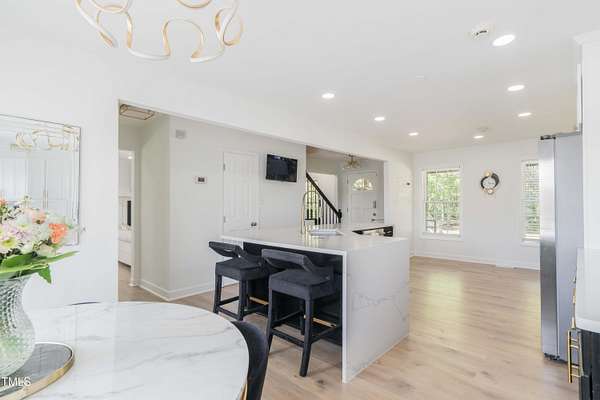 Welcome to 3010 Blueberry Lane--where space, privacy, and intention come together to create something truly special. Tucked away on over two acres in the heart of Chapel Hill, this fully reimagined home offers over 5,000 square feet designed for the way you actually want to live. From quiet mornings on the wrap-around porch to evenings spent hosting on the deck, every space invites you to slow down and enjoy it. Inside, the home unfolds with a seamless blend of modern design and everyday comfort. The kitchen becomes the heart of the home, anchored by a waterfall quartz island and a walk-in pantry built for real life. Natural flow leads you into spaces designed with purpose--a private office for focus, a dry bar for connection, a movie room for unwinding, and even a dedicated gym to keep life balanced. The primary suite is your personal retreat--featuring a spa-like bathroom with an expansive walk-in shower, soaking tub, and a softly lit mirror that sets the tone for both calm mornings and relaxed evenings. A custom walk-in closet completes the experience. Step outside, and the lifestyle continues. A long private drive and gated entrance create a true sense of arrival, while expansive parking makes hosting effortless. Multiple outdoor living spaces--including a covered deck, open entertaining deck, and wrap-around porch--overlook a peaceful, private setting with an above-ground pool ready for summer days. With a detached garage offering an in-law suite, workshop space, and endless flexibility, this property adapts to your life--whether you're hosting, working, or simply enjoying the quiet. This isn't just a home. It's a place to live fully.