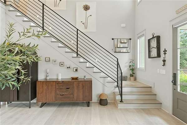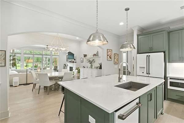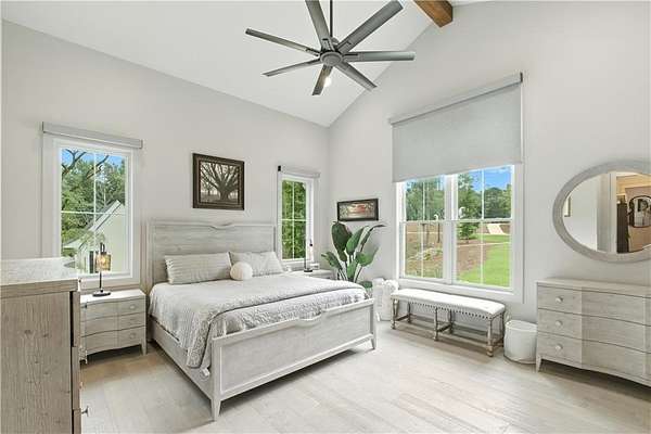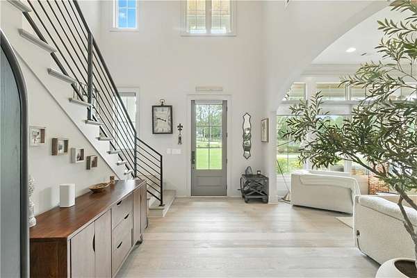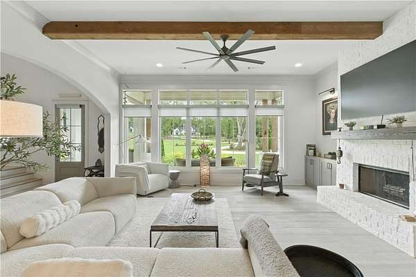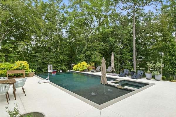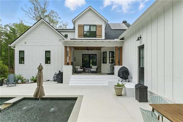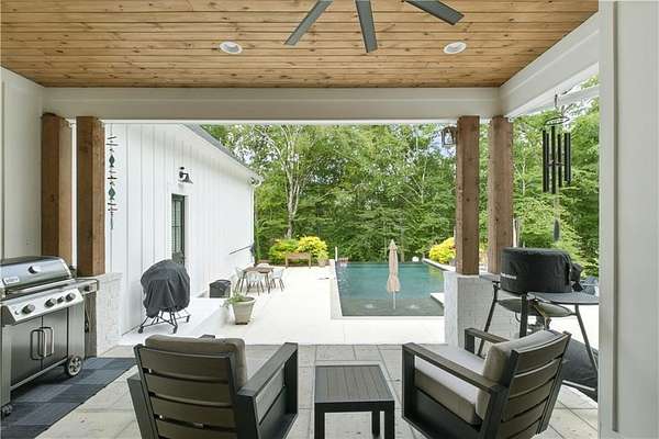 Experience luxury living at this stunning custom-built Modern Rustic style residence in Bridle Creek Estates, Auburn AL. This property boasts exceptional design selections, landscaped grounds, and an infinity edge pool with a built-in hot tub overlooking the incredibly beautiful Chewacla Creek. As you enter, the two-story foyer is illuminated by an abundance of natural light, accentuating the expansive living, dining and kitchen area that could seamlessly be featured in an upscale design magazine. High-quality materials were carefully chosen for construction , producing a sophisticated design aesthetic that is warm and inviting. The beautiful wide plank wooden flooring installed throughout enhances the overall ambiance. The heart of this residence is undoubtedly the gourmet kitchen, characterized by its serene ambiance. The kitchen boasts an elite appliance package, comprising of a 36-inch Fisher & Paykel gas range oven combo and the CAFE appliance suite with custom-designed hardware. The incorporation of a pantry/scullery duo, expansive hand-built pull-out drawers and a central island ensures a harmonious fusion of refinement and practicality. The property showcases impressive interior design elements, including large plank hardwood flooring and 10' ceilings on the main level, as well as a vaulted ceiling in the primary suite. The main level also features a guest suite, office and a laundry room while the upstairs level boasts 9' ceilings, two bedrooms with private baths and breathtaking views. An expansive game room / bonus space offers endless possibilities. The daylight basement includes a home gym, woodworking project room, and a climate controlled storage. The oversized three car garage features an integrated electric vehicle charging station while the properties solar panel systems generates up to 80kWh of power daily.
