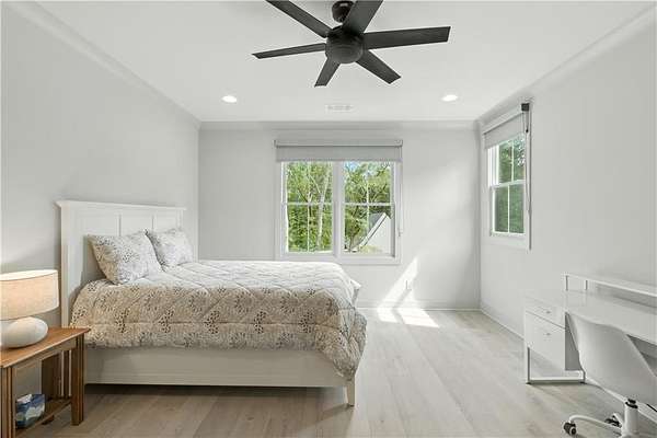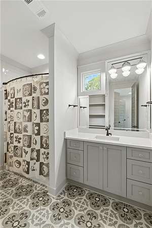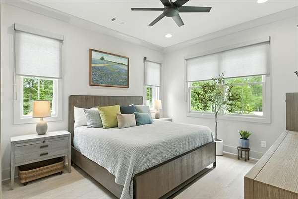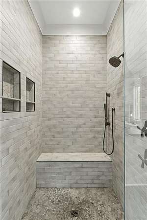 - Ceiling Fans, Draperies/Curtains, Primary Bedroom Downstairs, Zero Entry Shower