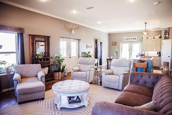 This Beautiful Barndominum Offers All The Benefits Of Country Living With Style, Luxury And Comfort! Spacious 3 Bedroom 2 Bath With Basement, 2000 sq ft Shop With Half Bath, And 12.387 Acres. Family Room Has Cozy Fireplace And Is Open To Kitchen & Dining. Kitchen Features A Big Island/Breakfast Bar, Abundant Cabinetry, Pantry, & Stainless Appliances. Master Suite Features His & Her Vanities, Luxurious Air-Flow Tub, & Walk-In Shower. Basement Offers Additional Living Space Or A 4th Bedroom To Suit Your Needs. Each Guest Bedroom Has Ample Space & Generous Closets. Garage/Shop With Attached 26x40 Carport Is Completely Insulated & Has New HVAC In May 2025! New Master Shower & Carpet In Bedrooms February 2024, New Dishwasher & Garbage Disposal, 50 gal Water Heater In October 2023 and Much More. Come And Enjoy A Peaceful Country Lifestyle With City Conveniences Just Minutes Away!