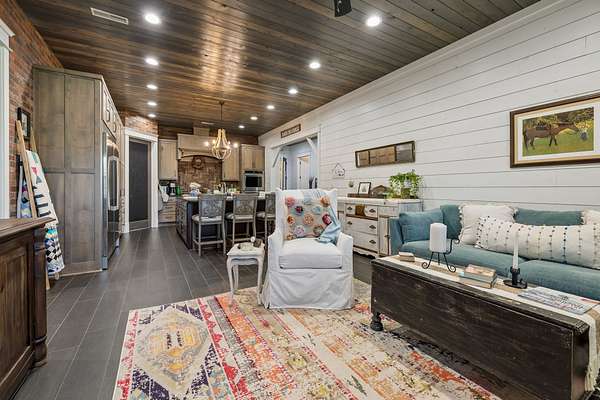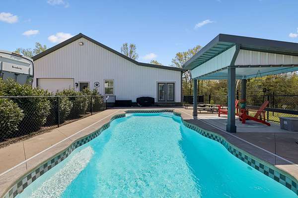 No HOA! 6.25 acres! Mini-farm with room for sheep, donkeys, chickens etc! This stunning home features brick walls, dazzling white board, captivating wood ceilings and sensational tile floors that make this open floor plan a divine setting. Natural wood completes each side of the cabinetry. The upscale double ovens adorn a gas cooktop with a light fixture on each side of the top shelves. The enormous leathered granite island is a keepsake for sure! The stainless steel refrigerator is an eye-opener too. 2 large bedrooms and 2 baths, one on each side, and a murphy bedroom sleeps 6. Innovative sunroom converted into a bath for the saltwater pool! The fire-pit with extra seating is perfect for those crisp Tennessee nights. Property also features a 1044 sq ft guest house perfect for visitors or to use as an Airbnb! In all, there is 3-car garage and 1 on the main house. There is a dog-run, an extra maintenance shed, 24x24 barn, tack room, stocked pond, encapsulated crawlspace, and Comcast internet. Just about 2 miles from I-840.