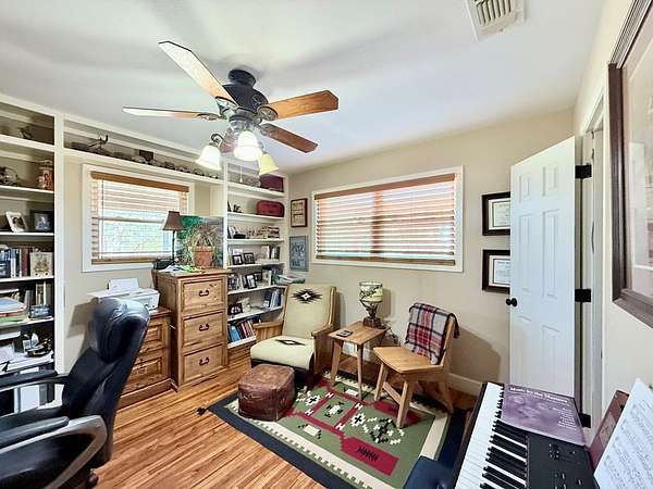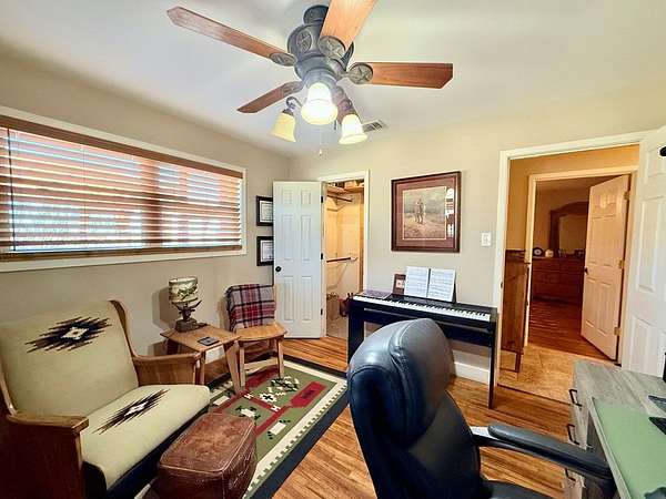 - Ceiling Fan(s), Hardwood Floors, High Ceilings, Shades/Blinds, Tile Flooring