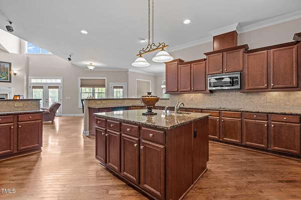 - Bathtub/Shower Combination, Ceiling Fan(s), Crown Molding, Dual Closets, Eat-In Kitchen, Entrance Foyer, Granite Counters, High Speed Internet, Kitchen Island, Open Floorplan, Pantry, Primary Downstairs, Recessed Lighting, Room Over Garage, Second Primary Bedroom, Separate Shower, Smooth Ceilings, Vaulted Ceiling(s), Walk-In Closet(s), Water Closet, Whirlpool Tub