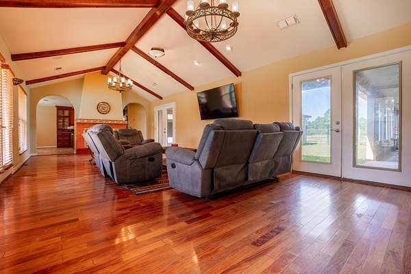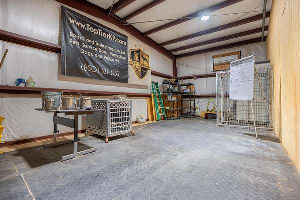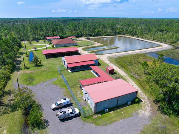 NEW ROOF to be installed prior to closing. If you're a horse lover, dog trainer, or passionate about wildlife, your search for a peaceful country haven ends here! Enjoy the best of both worlds with this beautiful 9.996 acre property located just 20 minutes from shopping and stunning beaches. Welcome to this 2,284 sq. ft. home featuring 3 bedrooms and 3.5 bathrooms. ALL BEDROOMS EQUIPPED WITH PRIVATE FULL BATHROOM. The cozy 2 sided wood-burning fireplace can be enjoyed from both the living room and the kitchen. Spacious primary suite offers its own wood-burning fireplace, a large custom closet and an en suite bathroom featuring a separate tub and shower with double vanity and tile flooring. Step outside to enjoy the one-acre pond, perfect for leisurely strolls or simply soaking in breathtaking sunsets. This property is equipped with a private well with a water filtration system and 2 septic tanks, helping maintain lower utility bills. You'll also appreciate the three-car garage and ample outdoor parking/storage. The property features 3 metal carports , one being 30x60 with 14-foot ceilings - perfect for RV parking. A 30'x50' barn that can be converted back to its original equestrian use. Impressive 40'x60' insulated metal building with roll down door and 1/2 bath offering versatile options for your hobbies or business needs. Both barn and the large metal shop are equipped with separate utility poles. With so much to offer, this country retreat perfectly balances spacious living and outdoor enjoyment, all while being zoned for agriculture. This means you can pursue your passion for farming or equestrian activities right from your doorstep. Don't miss the opportunity to make this tranquil haven your forever home!