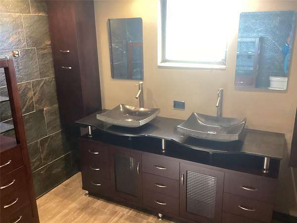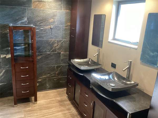 - Dry Bar, Kitchen/Family Room Combo, Primary Bedroom Main Floor, Solid Wood Cabinets, Stone Counters, Thermostat, Window Treatments