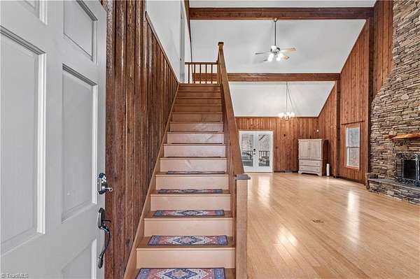 Experience the best of country living on this beautifully maintained 15.5-acre property. The inviting 2-bedroom, 2-bath home includes a bonus room & a finished bathroom in the basement that is not counted in the heated square footage. There are 2 options for the primary bedroom, on the main & upstairs, your choice! Enjoy comfortable living spaces, abundant natural light, & an updated kitchen w/ newer cabinets, granite countertops, stainless steel appliances, a walk-in pantry, and a wine fridge. The land offers a beautiful mix of open pasture and mature woods, w/ fenced areas ready for livestock and supported by a two-stall barn w/ toilet and sink. Raised garden beds, a chicken coop, a detached garage, & a lean-to w/ included farm equipment make upkeep simple. A stocked one-acre pond provides a peaceful setting for fishing and relaxation, & dozens of deer cross the property daily, creating a serene rural retreat. Additional information is available through the features & updates sheet.