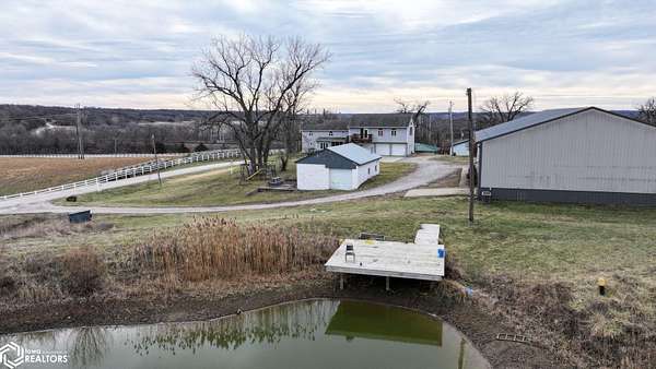 Here's your opportunity to own this beautiful one of a kind property. Edge of town, in the county but still on a hard surface road. You'll enjoy spectacular views from different view points with the multiple decks. This spacious home offers 4 bedrooms, 2 baths, dining room off of the kitchen, main floor laundry, living room with hard wood floors and a fireplace, an additional large living space upstairs, and a 3 car attached heated and cooled garage. There is a shop with overhead door, heat, and concrete floor, as well as a 2nd 34x72 shop that has 2 overhead doors, lofts on both sides for storage, heated floors, and an apartment with kitchen and bathroom, and office area. Zoned commercial providing extra potential. If this property hasn't wowed you enough already, it sits on 3.15 acres with a pond. Don't pass up the chance to call this your new home, call an agent to set up a showing.