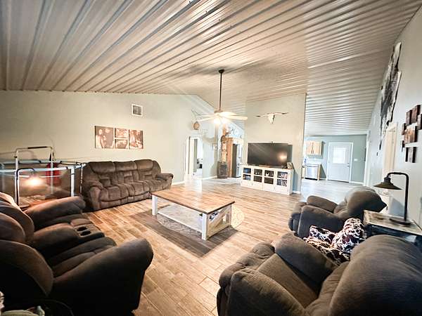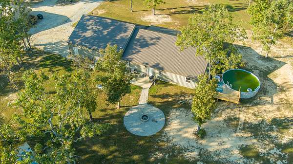 Built for both durability and style, this home sits on a concrete slab with metal siding and a metal roof, Jeld-Wen double-pane windows, and a shared drilled well and driveway. The attached 3-car garage offers plenty of space for vehicles, gear, and hobbies (note: air compressor and lift excluded). Step outside to enjoy your personal oasis--a 24' round, 52" high steel-sided pool with a deck, a cozy fire pit area for evenings under the stars, and plenty of room to relax after a day in the woods. Whether you're looking for a permanent home or a weekend getaway, this property delivers comfort, recreation, and privacy in one inviting package.