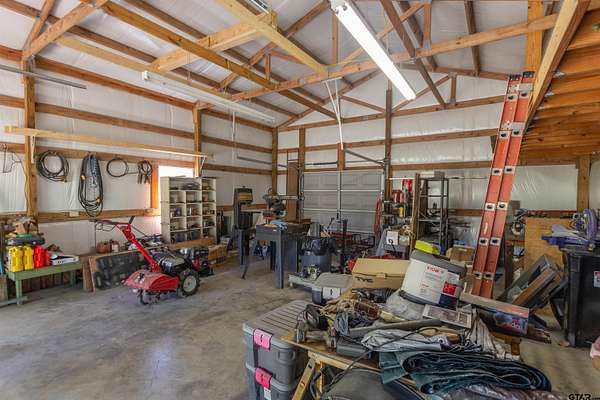 Welcome to your private retreat in the Hawkins/Holly Lake Ranch area! About 45-60 minutes from Tyler or Longview, and nestled on over 4 mostly wooded acres, this 3-bedroom, 2-bathroom home offers the perfect blend of comfort, space, and value. The open floor plan is complemented by a split bedroom layout for added privacy and features composite countertops and stylish finishes throughout the kitchen and other living areas. The spacious primary bedroom opens to the patio and has a well-appointed en suite featuring dual vanities, a soaking tub, a separate shower, and a his-and-hers walk-in closet. Enjoy peace-of-mind with a whole-home security system and a Generac generator, ensuring you'll never be without power. The 20x30 workshop includes a nearly-new 80 gallon air compressor and is ready for any project you're willing to throw at it. Fiber internet is ready to stream your favorite content, and the roof was replaced in October 2025. Whether you're relaxing on the patio, exploring your acreage (there are freshwater springs near the back of the property), or just watching the stars overhead, country privacy and modern comfort are what make this house your home. Don't miss the opportunity to own your own acreage in this well-loved East Texas community.