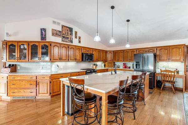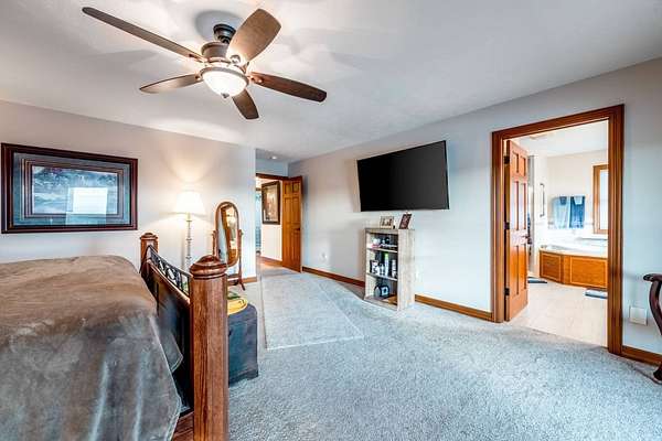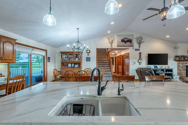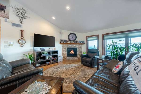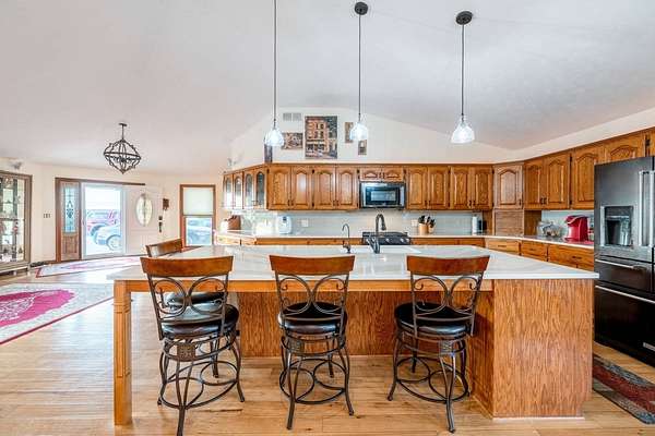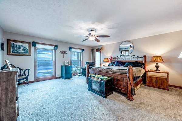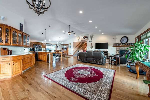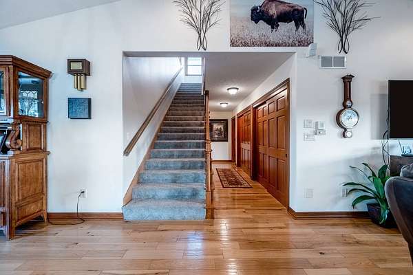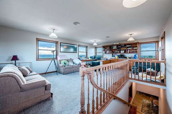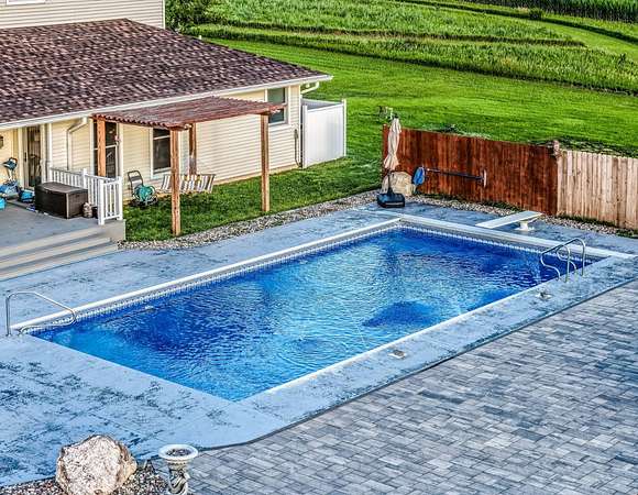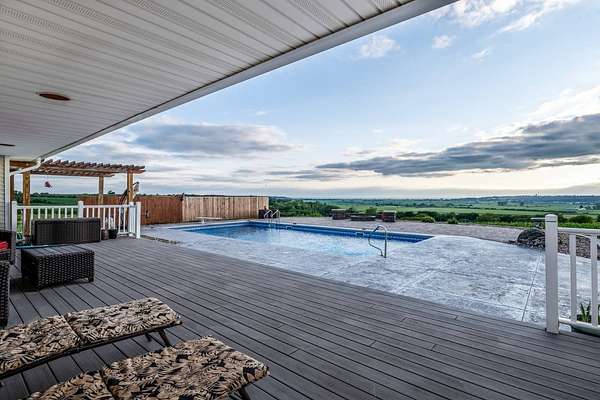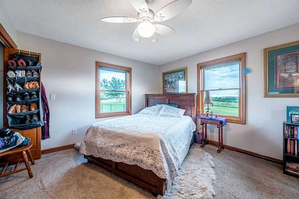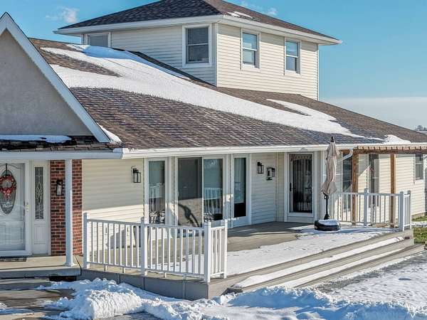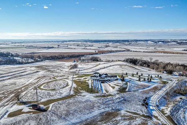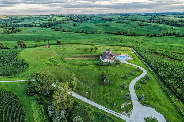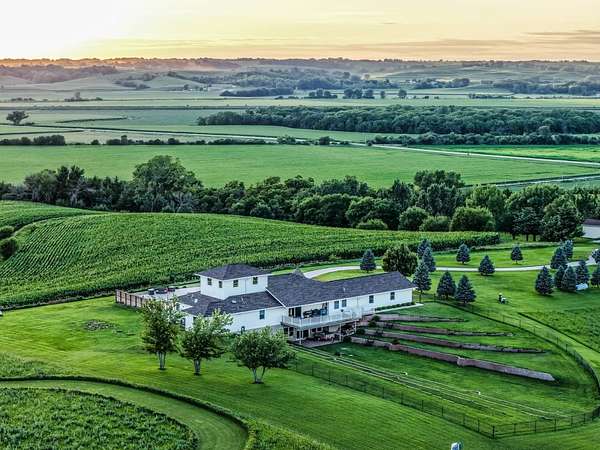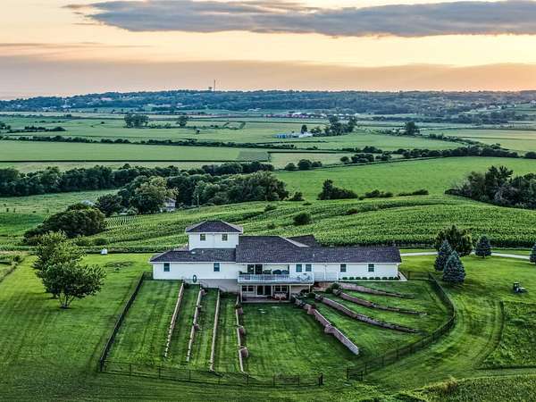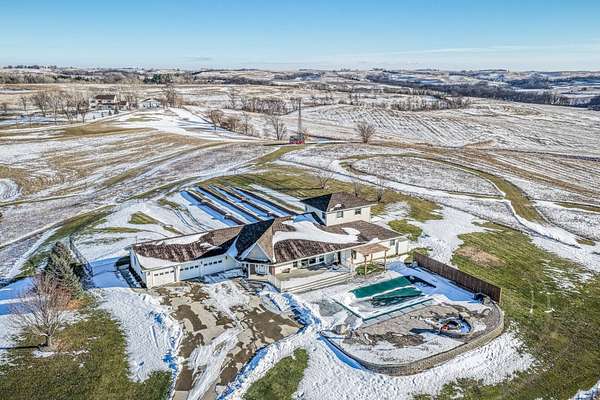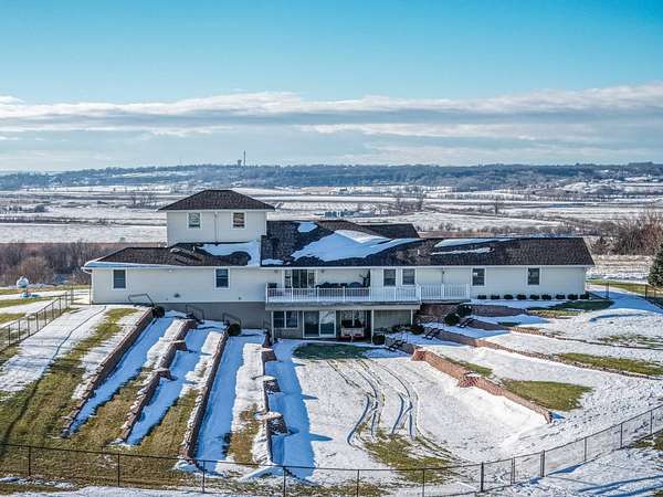 Step into 2026 on this 5-acre Loess Hills acreage with wide-open views in every direction. This walk-out ranch offers 3,147 sq ft above grade plus 2,400 sq ft of finished lower level, providing more than 5,500 sq ft of total finished living space. The main level features an open layout with hickory floors, a gas fireplace, a large primary suite, two additional bedrooms, three full baths, a half bath, and a 432-sq-ft loft ideal for office use. The finished walk-out lower level adds a wet bar, spacious recreation area, a non-conforming bedroom, and a concrete storm shelter. Outdoor amenities include two composite decks totaling nearly 1,000 sq ft and an in-ground pool positioned to overlook classic Loess Hills scenery. Located on a surveyed five-acre parcel at the end of a cul-de-sac, the property offers sunrise-to-sunset views and notable privacy while remaining only minutes from Missouri Valley and a short drive to the Omaha metro. A 10-kW wind-turbine tower remains onsite; the turbine head is storm-damaged and conveys as-is. Recent updates include a new roof in 2024 and a replaced heating system in 2022. Private well and septic. Additional features include central air, a 960-sq-ft attached garage, and a 168-sq-ft storage shed. This acreage combines space, views, and a setting that is difficult to match.