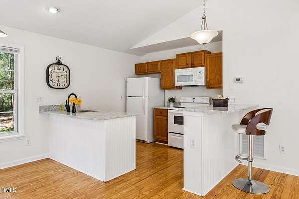 Est $2,328/moWelcome to the Tree House! Duplex on 2 acres near St Marys Road in Hillsborough. Main house features 2 bedrooms, 2 baths, front porch and back deck. Granite counters in the kitchen, stainless appliances, hardwood flooring, laundry closet with washer and dryer hookups. Detached 2 car garage with gorgeous light-filled 1 bedroom, 1 bath apartment, featuring hardwoods, laundry hookup, and its own porch.