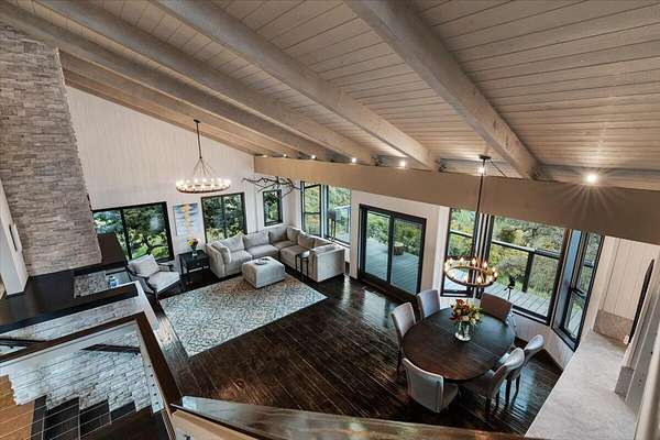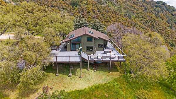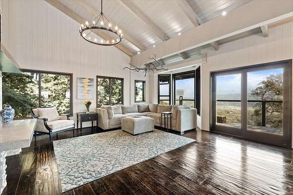 Set high above the valley on almost 10 scenic acres, this truly one-of-a-kind Bear Valley Springs estate offers sweeping views of the southern San Joaquin Valley and most of Bear Valley Springs. A long, newly graveled driveway winds through natural surroundings, leading to a peaceful and secluded mountain retreat. This 2,800 sq ft modern farmhouse blends timeless architectural detail with upscale finishes, including honed stone and hand-scraped wood floors, Velux and Milgard windows, dimmable lighting, built-in speakers, and over 1,800 sq ft of Trex decking to take in the expansive views. The chef's kitchen features stainless steel appliances, a 48'' dual oven with griddle, and a cozy breakfast nook. The spacious primary suite offers private deck access and a luxurious bathroom with Nordic Grey marble, a jacuzzi tub, a steam and rain shower, and heated floors. A separate walk-in closet provides plenty of space and storage. Downstairs includes two additional bedrooms, a full bathroom with heated floors, and access to a covered patioideal for a gym, yoga space, or peaceful hangout spot. Between the main floor and lower level, you'll also find a massive laundry room with extensive storage. The grounds include raised beds and existing irrigation lines in place, ready for new life. A detached two-car garage includes water, power, EV charger, and a dedicated workshop area. There's also a storage shed with power, and a large storage space beneath the home with water, power, and HVACperfect for tools, hobbies, or future expansion. The septic system was replaced in 2021, offering added peace of mind for years to come. Horse potential? Absolutely. With usable acreage and unmatched seclusion, this property offers endless opportunity. Whether you're seeking a peaceful full-time residence or the ultimate mountain escape, this is the lifestyle you've been waiting for.