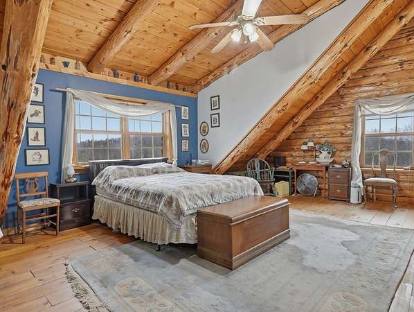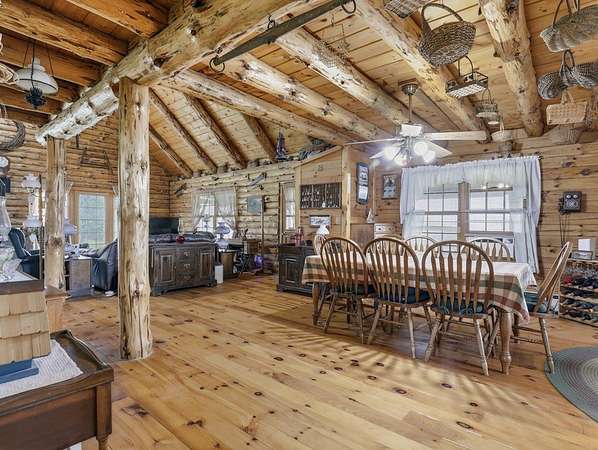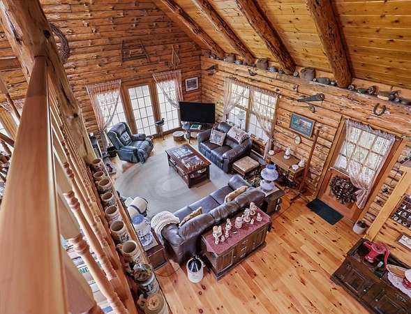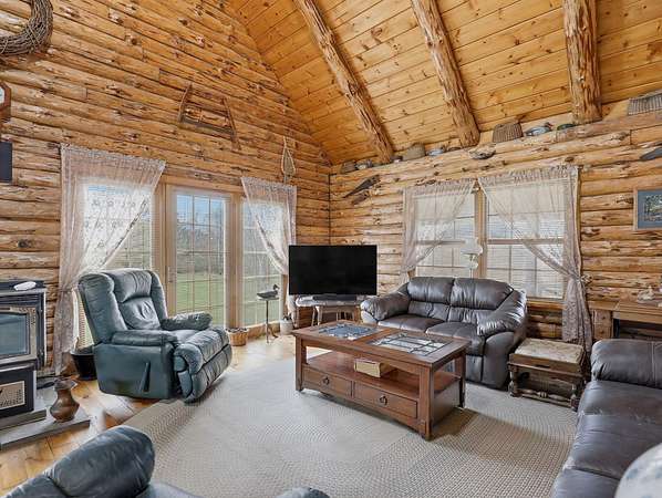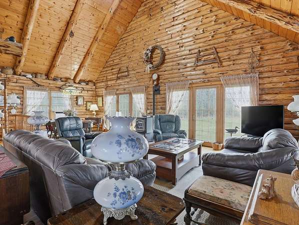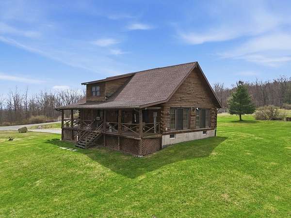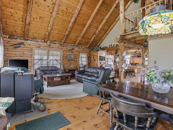 28 Acres of Log Home Living, Hunting Land & Endless Views — Fresh Opportunity! Escape to the peace and privacy of Bradford County with this beautiful log home on 28 wooded acres in Wyalusing. Featuring soaring ceilings, warm wood interior, and a cozy pellet stove fireplace, this home offers the perfect blend of rustic charm and everyday comfort. The loft includes a spacious primary suite plus office space ideal for remote work or a quiet retreat. Large windows fill the home with natural light and showcase the scenic countryside. Relax on the wraparound porch, watch wildlife, sip your morning coffee, or enjoy your own private hunting and hiking land. With room to roam, unmatched privacy, this property is an incredible opportunity for anyone searching for acreage, a log home, hunting land, or a country getaway in Bradford County PA. Big views, big acreage, this one worth a second look!