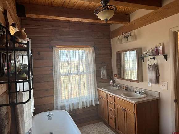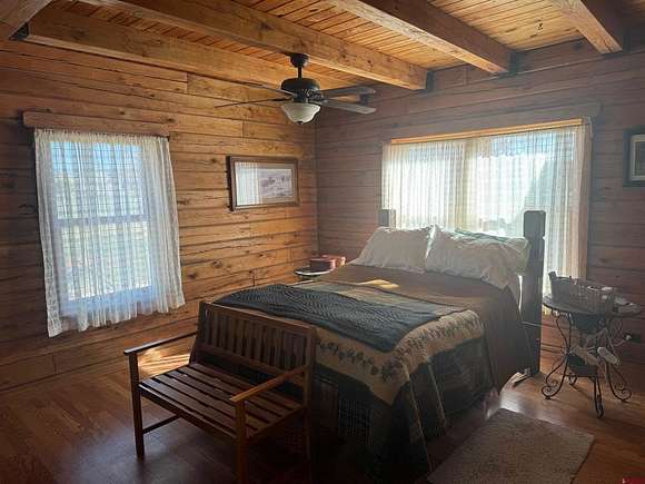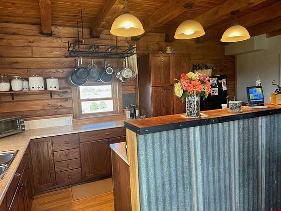 Est $2,521/moBev Williamson, RE/MAX Mesa Verde Realty, C: 970-759-0183, beverlyw@remax.net, www.KenandBevRealEstate.com: Quality Gastineau Oak Log Home with panoramic views. This is an individual lot (not in a subdivision). Enjoy your morning coffee and spectacular sunsets on the deck over-looking the valley. This home has so many possibilities. Two bedrooms upstairs one of which is an OPEN LOFT. Primary bedroom with walk-in closet and bath with claw foot tub on main level.Plenty of room in the unfinished basement to add a bedroom, family room, think of the possibilities! Includes storage shed. 13.45+/- acres with Summit water in a WUA. Close proximity to down-town Dolores, McPhee Reservoir, hunting, fishing, skiing.
