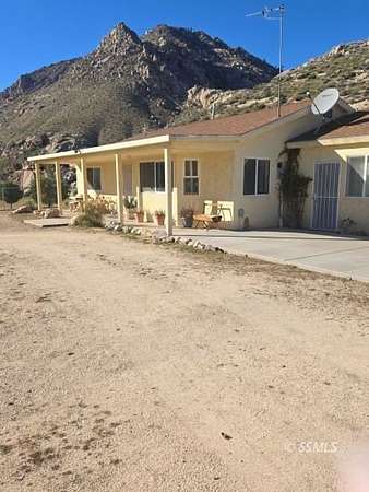 Own 10 acres of off-grid living bordering a California State Preserve. This 2-bedroom, -bath home features an open floor plan powered by an owner-paid solar system, offering significant savings on electric costs. A Shared Well system with the home next door is also available for those families interested. Satellite internet is available, allowing you to stay connected while enjoying a peaceful rural setting. Conveniently located approximately one hour from Bakersfield and 45 minutes from Ridgecrest, you are never far from retail stores and services. The fenced backyard provides a safe space for pets, and the detached garage offers covered parking or storage. Natural rock formations behind the home create striking, one-of-a-kind scenery, while Joshua Trees dot the landscape. In the winter enjoy expansive views of snow-capped mountains from the living space, making this property a true high-desert retreat