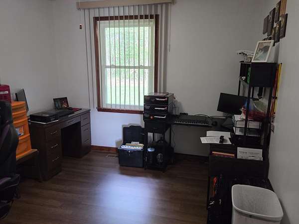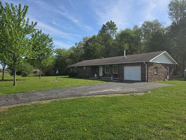 Est $1,627/moPicturesque country location for this brick, 3BR, 2 BA ranch home with over 6 acres. Newer laminate vinyl flooring throughout home. Approx. 3 acres wooded. Corner lot with ample road frontage to divide for additional building lot. Attached garage and workshop for extra storage. Paved driveway, natural gas heat. wood stove, and a covered rear patio.