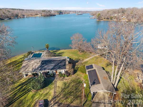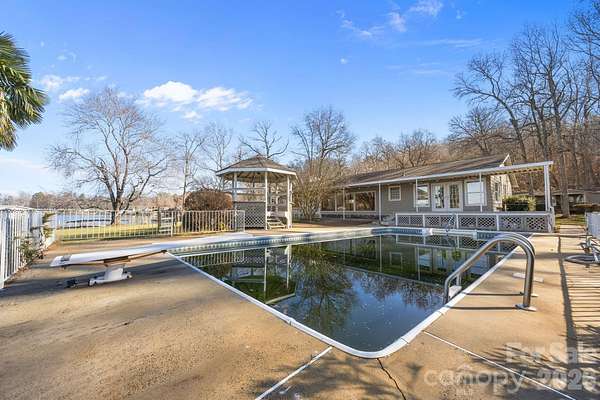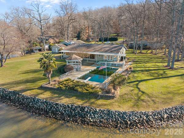This opportunity doesn't come around often! With almost TWO ACRES of water front property, this home could be what you've been dreaming of. Walk inside to see the gorgeous vaulted wooden ceiling with exposed beams and the spacious living area that opens to the kitchen. There is a view of the water from every one of the large windows on that side of the home. With incredible bones, this home has character in spades. Outside you will find a private pool and gazebo with an amazing private view of the water. With a dock and boat lift, this home has everything you need for entertaining inside and out! A smaller guest house on the property provides you with the option of rental income. Whether you want to embrace the charm of this amazing home or start from scratch, this is an opportunity you don't want to pass up. Schedule your showing today!