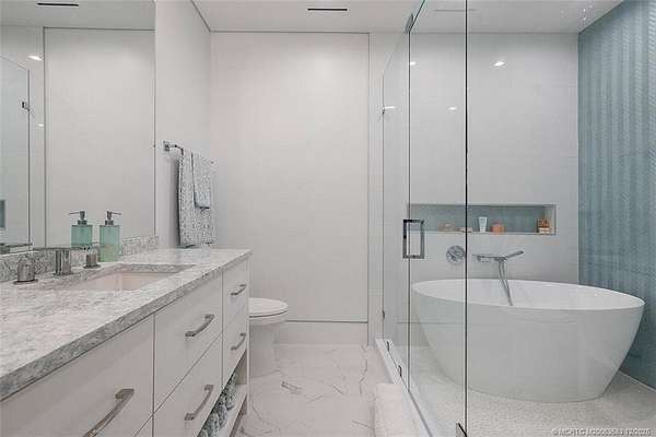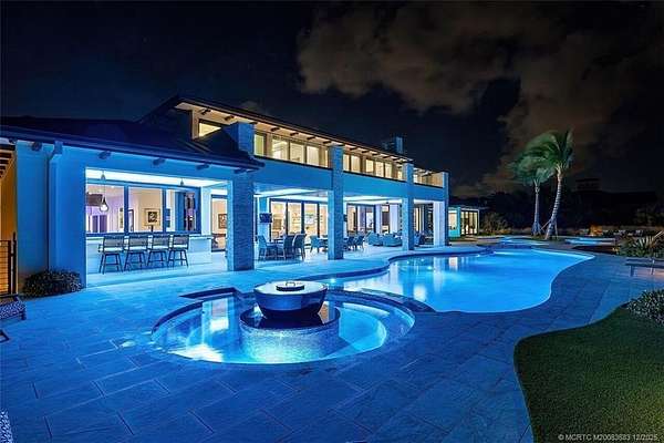 Tee Off in Paradise. New oceanfront & golf dream home in Sailfish Point, Stuart, Florida, offers a luxurious lifestyle in a gated community. With 300 ft of oceanfront on a 2.12-acre estate, you'll wake up to stunning ocean views. Golf enthusiasts can perfect their swing on the Jack Nicklaus Signature course in their own backyard. The 5-bedroom masterpiece includes a main-floor oceanfront master suite, indoor bowling alley, game room, & theater. Enjoy leisurely moments by serene koi ponds & in the lazy river pool and spa. 2 garages can accommodate 8 vehicles, a wave runner trailer, & 2 golf carts. There's also a dedicated space for a nanny or property manager. Sailfish Point offers a full-service marina for boats up to 125 ft, private airport access with US Customs on-site, & an oceanfront country club w dining, tennis, pickleball, a fitness center, spa, & even a helipad.