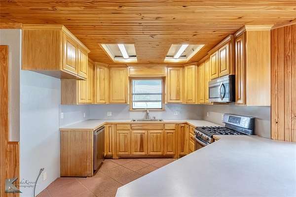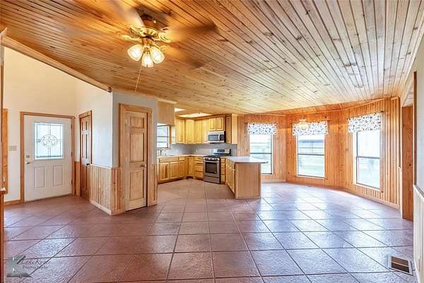 Discover peaceful country living on approximately 30 acres in beautiful Tuscola, Texas, with this charming 3-bedroom, 2.5-bath, 1,760 sq ft two-story ranch-style home. Featuring warm cedar siding, a durable metal roof, and a full-size basement, this home combines timeless design with functionality. Inside, you'll find inviting wood details and a gas stove that anchors the kitchen, adding rustic charm and everyday comfort. Enjoy mornings and evenings on the spacious covered front and back porches, surrounded by mature mesquite trees and endless open views. Ideal for equestrian enthusiasts or anyone seeking a country lifestyle, the property includes a 38x65 horse barn with individual pens, a 100x24 equipment cover, a 552 sq ft heated and cooled shop perfect for hobbies or workspace, a two-car carport, and a one-car garage. Two tanks add to the natural beauty and function of the land, offering water access for livestock or leisure. A winding gravel drive welcomes you home past open fields and native wildflowers, while the surrounding landscape offers room to roam, ride, or relax. This is more than a home, it's a lifestyle centered on space, freedom, and the beauty of rural Texas living, all just a short drive from Abilene amenities.