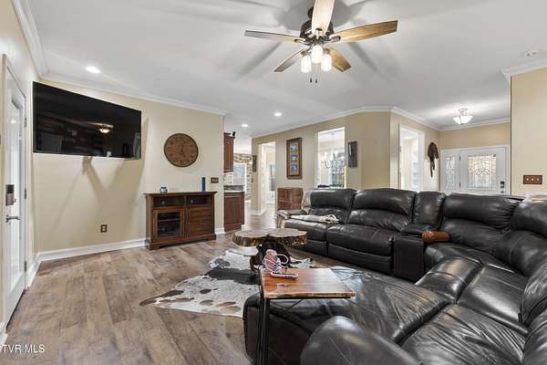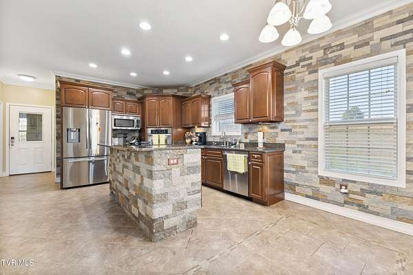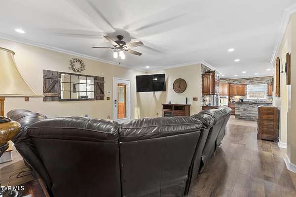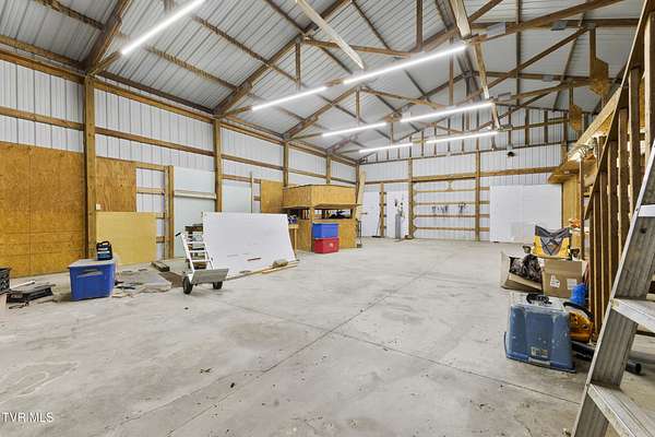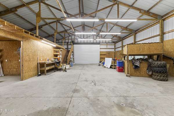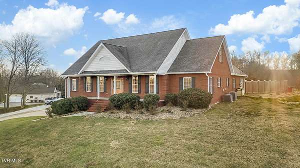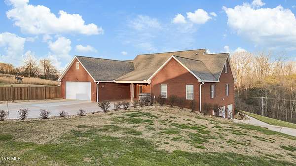 Set on 5 picturesque acres, this exceptional 5-bedroom, 3.5-bath mini-farm offers the perfect blend of comfort, functionality, and room to grow-complete with a beautiful spring-fed creek running through the property, adding both charm and natural serenity. The home features a spacious primary suite on the main level, providing convenient one-level living alongside expansive common areas ideal for everyday living and entertaining. The main level showcases generous living spaces anchored by a well-equipped kitchen, thoughtfully designed for gatherings large or small. Upstairs, you'll find the remaining bedrooms along with a fantastic entertainment area complete with a kitchenette, making it an ideal space for movie nights, game days, or extended-stay guests. The full basement is wide open and ready to be customized to suit your needs, offering abundant garage space and storage for vehicles, tools, or recreational equipment. Step outside to the back patio featuring custom hardwood stamped concrete, where you can unwind in the hot tub or simply relax and take in the peaceful setting. Adding incredible value to the property is the impressive 40x60 shop, perfectly suited for equipment storage, hobbies, or a working shop. This space includes a loft, bathroom, heated office area, and plenty of room to spread out. Even your four-legged companions are well cared for with their own designated area featuring an underground fence, concrete pad, and water and drain setup. Conveniently located near Interstate 81, this property offers easy access to the Tri-Cities, Knoxville, and the Great Smoky Mountains, making it an ideal combination of country living with excellent connectivity. Call today to schedule your private showing of this remarkable mini-farm property.