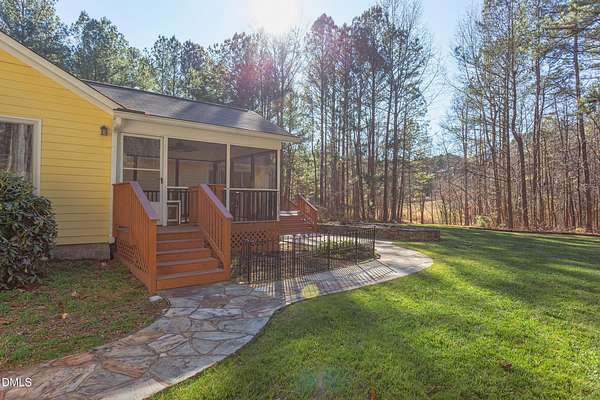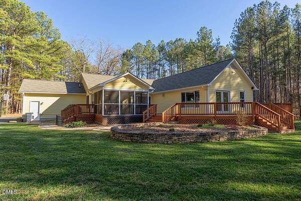 This 1-level home is designed for living well both inside, where it's warm & comfortable, & outside, where you can relax & hear bird songs & rustling leaves. Just west of Carrboro, this quiet retreat offers a large kitchen with lots of cabinet & counter space, a pantry, & the perfect spot for casual meals by the bright bay window overlooking the front garden. The living & dining areas enjoy a gas fireplace, an open flow, & access to the big screened-in porch, which is fabulous for al fresco meals or relaxing with a book after a long day. The spacious primary suite features both a private bathroom & a lifestyle room, great for an office, workout area, or spectacular dressing room. Two additional bedrooms, separated from the primary by a flex room/den, have sizable closets, nice views, & share a hall bath. Beyond the back deck lies a sprawling, flat, & open backyard, ready for playtime, gardening, or enjoying sunny skies, which the rooftop solar panels take full advantage of for savings on energy costs. An attached 2-car garage, & a shed, provide added storage, & the extra parking areas can accommodate an RV or any of your larger parking needs. And then there's the icing on the cake: a dreamy workshop with a full bath. Whether for a woodworker, artist, remote worker, writer, or anyone in need of an inspiring space, this versatile building offers endless possibilities. The property reflects years of thoughtful loving care, & is the peaceful sanctuary you've been hoping to find.