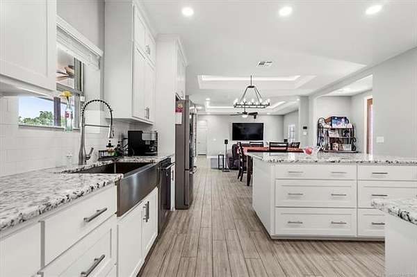 You do not want to miss out on this one owner custom built home that is located on 3.72acres in an upcoming new neighborhood in Ringo Estates. This home was built w/ 4 beds, 3.5 baths, and oversized 2 car garage. Master bedroom is down w/ 2 more bedrooms and one bedroom upstairs w/ full bathroom. Master bathroom has a GINORMOUS shower w/ 2 ways to enter, soaking tub and heated tile flooring. Large walk in closet w/ island. The kitchen is open w/ large granite island, soft close doors & drawers and a walk in pantry. MANY more upgrades that are mentioned in the documents section.