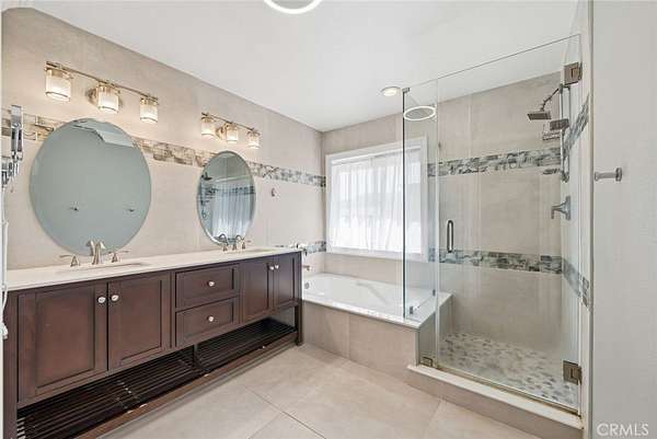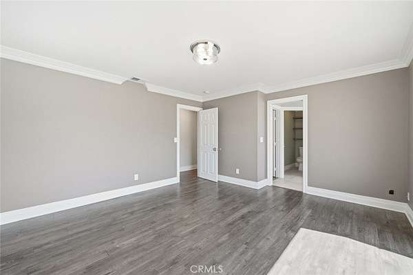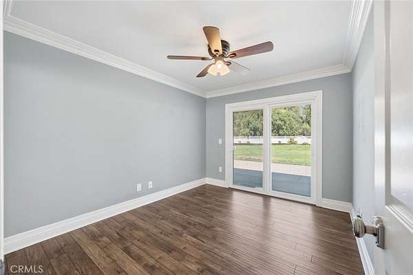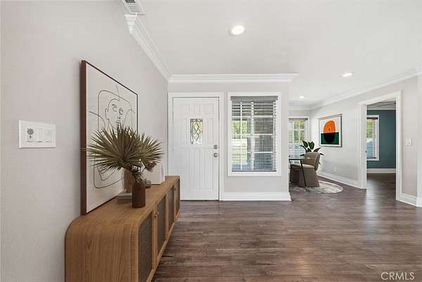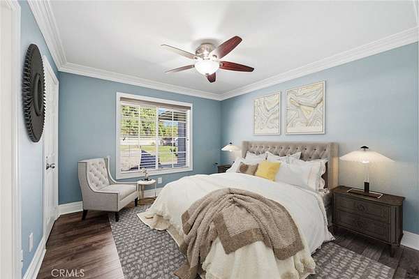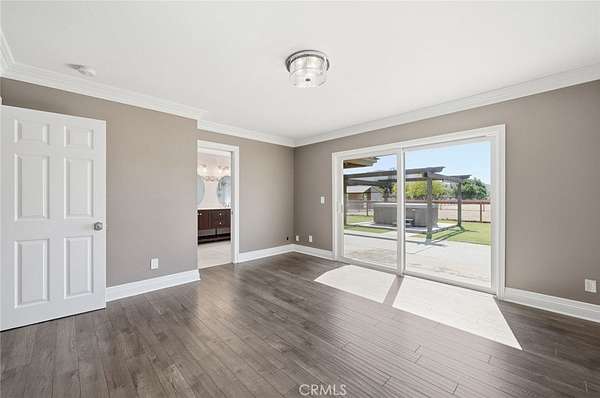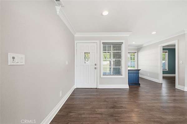 Custom details include elegant crown molding, oversized baseboards, a walk-in pantry, a 30-bottle wine fridge, and large windows that capture scenic views throughout. A solar system adds energy efficiency and long-term savings.