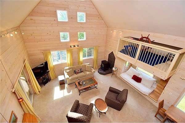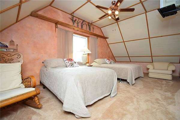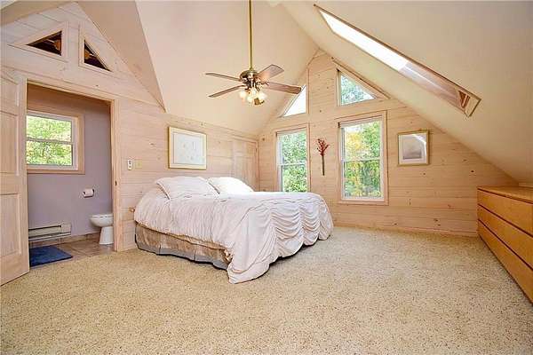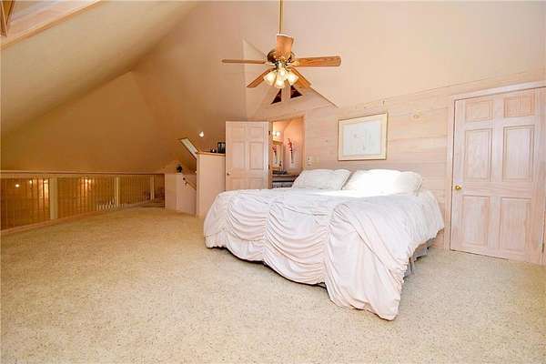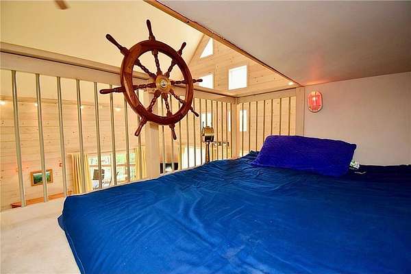 Welcome to nearly 3 beautiful acres of your very own private paradise and 500'+ of channel water frontage on Burlingame Lake. Vaulted FULLY FURNISHED 2003 built lake home with insulated XL 2 car lofted garage w/Rec Room & bedroom perched on Burlingame Lake inlet, part of the 1,050 acre Minerva Lake Chain! Stroll down to the waterfront and toss a line in the water, or just relax on the dock that stays in year round and take it all in. Convenient electrical outlet down by the shoreline. Quickly explore your property in your side by side or jump on one of the fun designated sand trails nearby. Enjoy the worry-free life of newer construction and modern amenities w/warm lake home/cabin feel. Soaring 2 story living room w/primary suite loft flows seamlessly to the XL kitchen w/Lrg pantry. The futon in the side wall nook pulls out into a queen-size bed. Follow the ladder to the captain's quarters w/steering wheel to keep you on course. Escape to your covered deck w/peaceful views regardless of rain. Step downstairs to the walkout lower level to your ginormous Family Rm w/bedroom nook, Laundry Rm, full bath, French doors to hot tub room, and cement patio to spark up the grill or smoker. Endless species of trees, plants & wildlife and quiet lakefront living where you won't be accosted by jet skis or speedboats. Roof 2012. Ductless mini split efficiently delivers heat & A/C 2017/2018 w/room to add another wall unit on the current system! New high efficiency pellet furnace/stove 2024! Supplemental wall heaters in 2 of the 3 bathrooms keep your throne rooms extra toasty if desired.