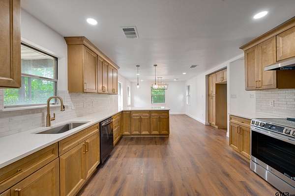Private Country Home & Guest Cottage on Acreage For Sale near Palestine in East Texas! Tucked away on approximately 38 serene, wooded acres east of Palestine, this private country retreat offers a beautifully rebuilt main home and fully updated guest cottage. Originally constructed in 1984, the 1,750 sq. ft. main home's interior was completely rebuilt in 2025, making it like a new home. It features a spacious living area with WBFP, completely new beautiful custom kitchen with appliances, and dining area, 3 bedrooms, 2 baths with luxury vinyl flooring throughout. An attached 2-car carport with storage and a separate 2-car garage/shop with additional covered parking provides plenty of protected parking space. The charming 650 sq. ft. guest cottage, built in 1991 and also fully remodeled in 2025, includes an open living/dining/kitchen area, 1 bedroom, & 1 bath, with luxury vinyl throughout for easy maintenance--perfect for guests, extended family, or a private office. A spring-fed pond nestled among the trees adds to the natural beauty and peaceful atmosphere of the property. Perfect for investment property for short or long term rental! Whether you're seeking a primary residence, weekend escape, multi-generational living, or income producing property, this East Texas gem delivers privacy, comfort, and timeless country appeal.