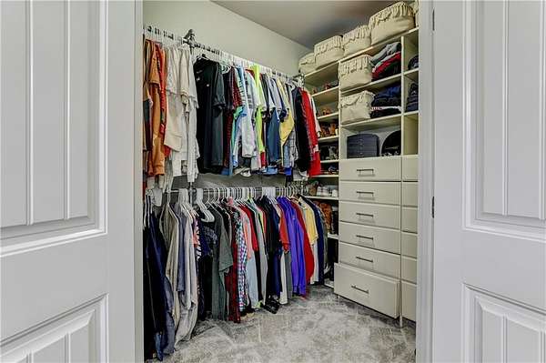 The primary suite includes a walk-in closet and spa-like bath with a large shower. Two secondary bedrooms on the main level also feature walk-in closets. The terrace level offers two additional bedrooms or offices, a full bath, media/family/exercise areas, and even a built-in safe room.